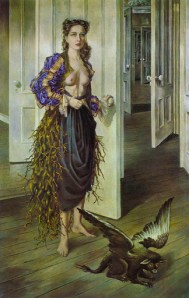 Photo représentant le tableau de l’artiste surréaliste Dorothea Tanning, intitulé Birthday 1942 et mentionné par Michele Bacholle-Boskovic lors de la conférence comme étant un des tableaux preférés d’Annie Ernaux.